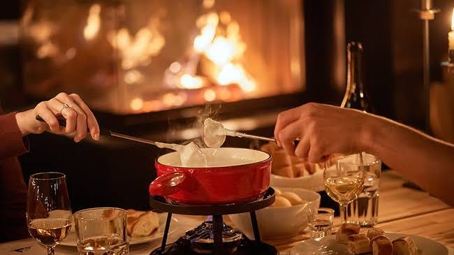Proof that romance improves dramatically when it involves cheese and a fireplace.