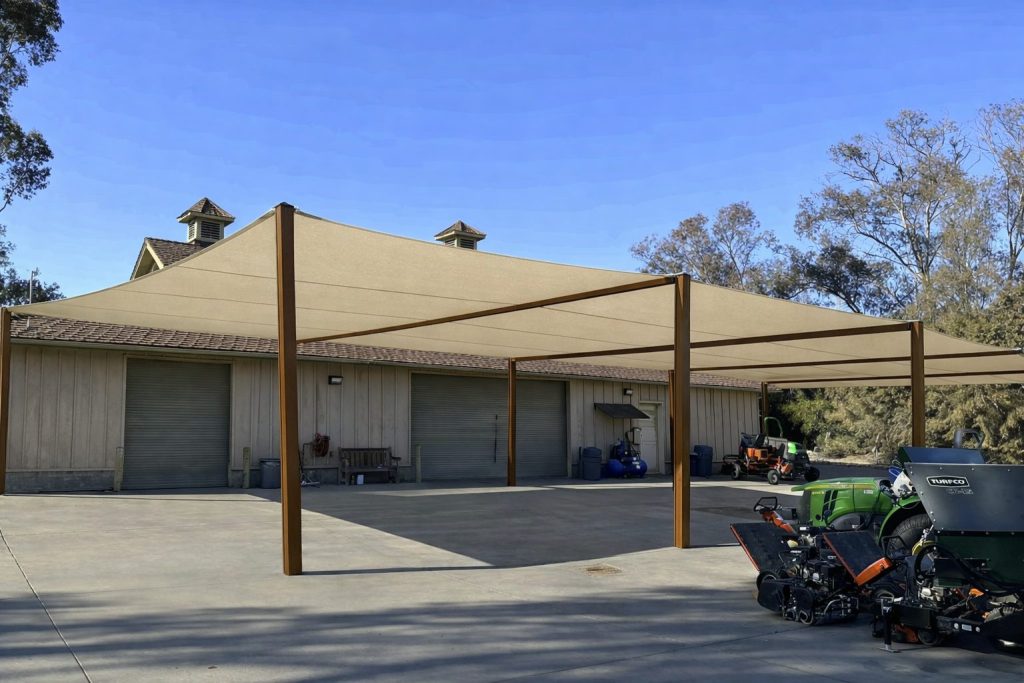 Consistency is another matter. Two prior Art Juries denied sun sails to shade all the new lawncare equipment. The Association asked again – and this Art Jury said yes. One wonders whether Tensile fabric structures, more at home at a marina, are now part of the Covenant’s architectural vernacular, or whether the building materials rules apply differently depending on who’s asking.